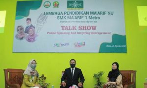 Talk Show untuk kali ini bertema “Public Speaking And Inspiring Enterpreneur”. Dengan tema yang luar biasa tersebut diharapkan akan menghasilkan output yang sama luar biasanya. Nara sumber untuk talk show ini ada dua yakni : Laras Ayu Aminda,S.E dan Nur Laili,S.E. dua nara sumber yang mengisi acara tersebut sudah mempunyai pengalaman yang luar biasa dibidangnya. Kegiatan ini diikuti oleh beberapa siswa dengan menerapkan protokol kesehatan yang sangat ketat. Tidak hanya itu, unutk kegiatan ini nantinya bisa di saksikan di Channel Youtube yang sudah disediakan.