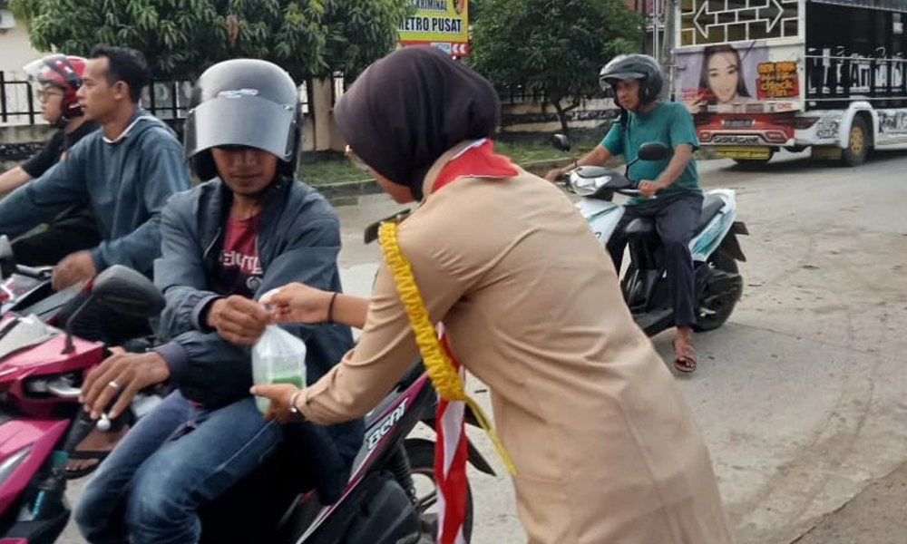 Pramuka SMK MA’ARIF 1 METRO melaksanakan kegiatan sosial dengan berbagi takjil kepada warga yang melintasi ruas jalan di sekitar bundaran 29 Banjarsari Metro Utara.