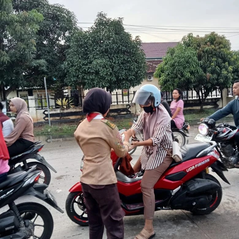 PRAMUKA SMK Ma’arif 1 Metro melaksanakan kegiatan berbagi takjil di depan Polsek Metro Pusat Hadimulyo Barat, pada jum’at 29 Maret 2024
