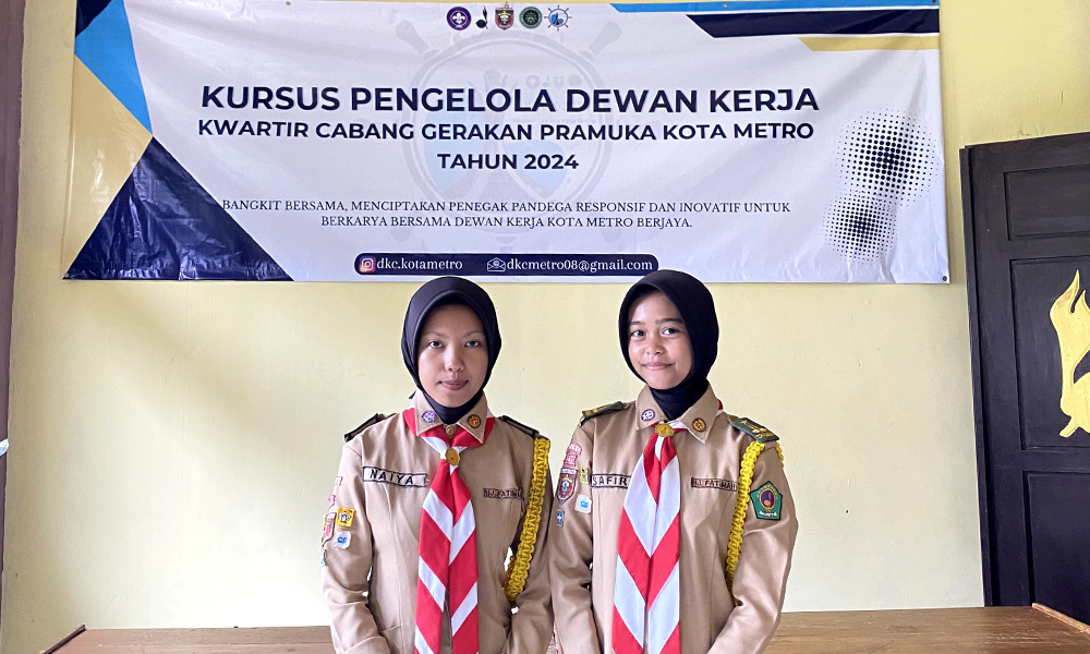 Pramuka mengikuti kegiatan kursus Pengelola dewan kerja Kwartir cabang Gerakan Pramuka Kota Metro yang dilaksanakan pada tanggal 3 – 5 Mei 2024.