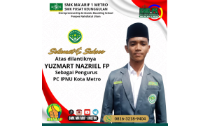 Pada Selasa 22 Oktober 2024 bertepatan dengan peringatan hari santri nasional, siswa XI TJKT Yusmart Nazril FP telah dilantik sebagai pengurus PC IPNU Metro masa hikmad 2024-2026