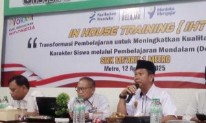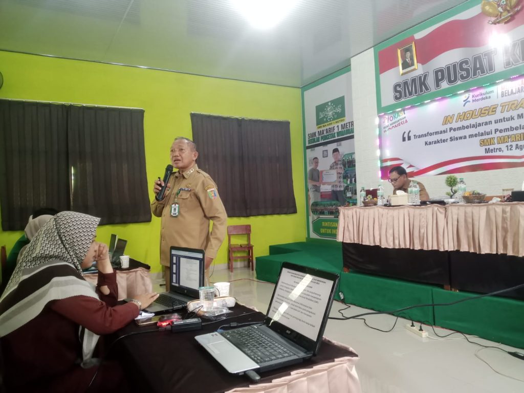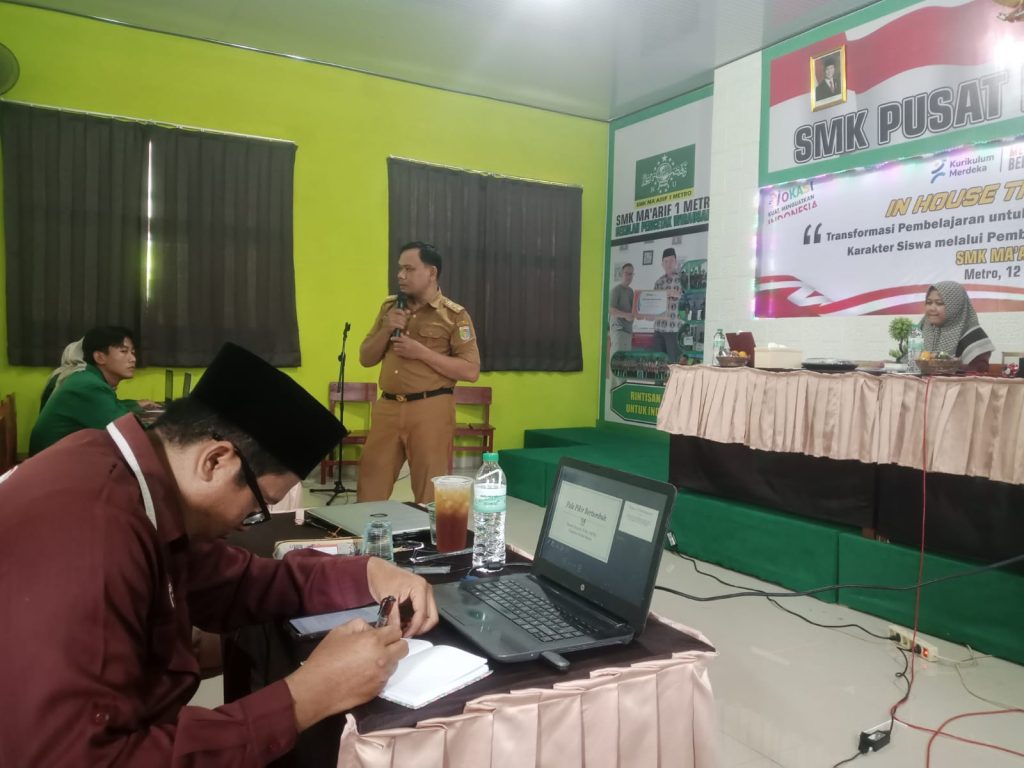 Pada Selasa-Rabu, 12-13 Agustus 2025 SMK Ma’arif 1 Metro melaksanakan kegiatan In House Training (IHT) yang bertema “Transformasi Pembelajaran Untuk Meningkatkan Kualitas Pendidikan Dan Karakter Siswa Melalui Pembelajaran Mendalam (Deep Learning) “. Pada hal ini materi disampaikan oleh Pengawas SMK Provinsi Lampung yaitu bapak H. Slamet Iskandar, M.Pd. dan bapak Slamet Riyanto, S.Sos., M.Pd.
